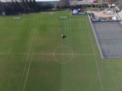 During the project the pitches had a layer of sand spread on them and were then aerated. 14:6:8 fertiliser was applied and MM60 grass seed sown with a Vredo disc seeder.