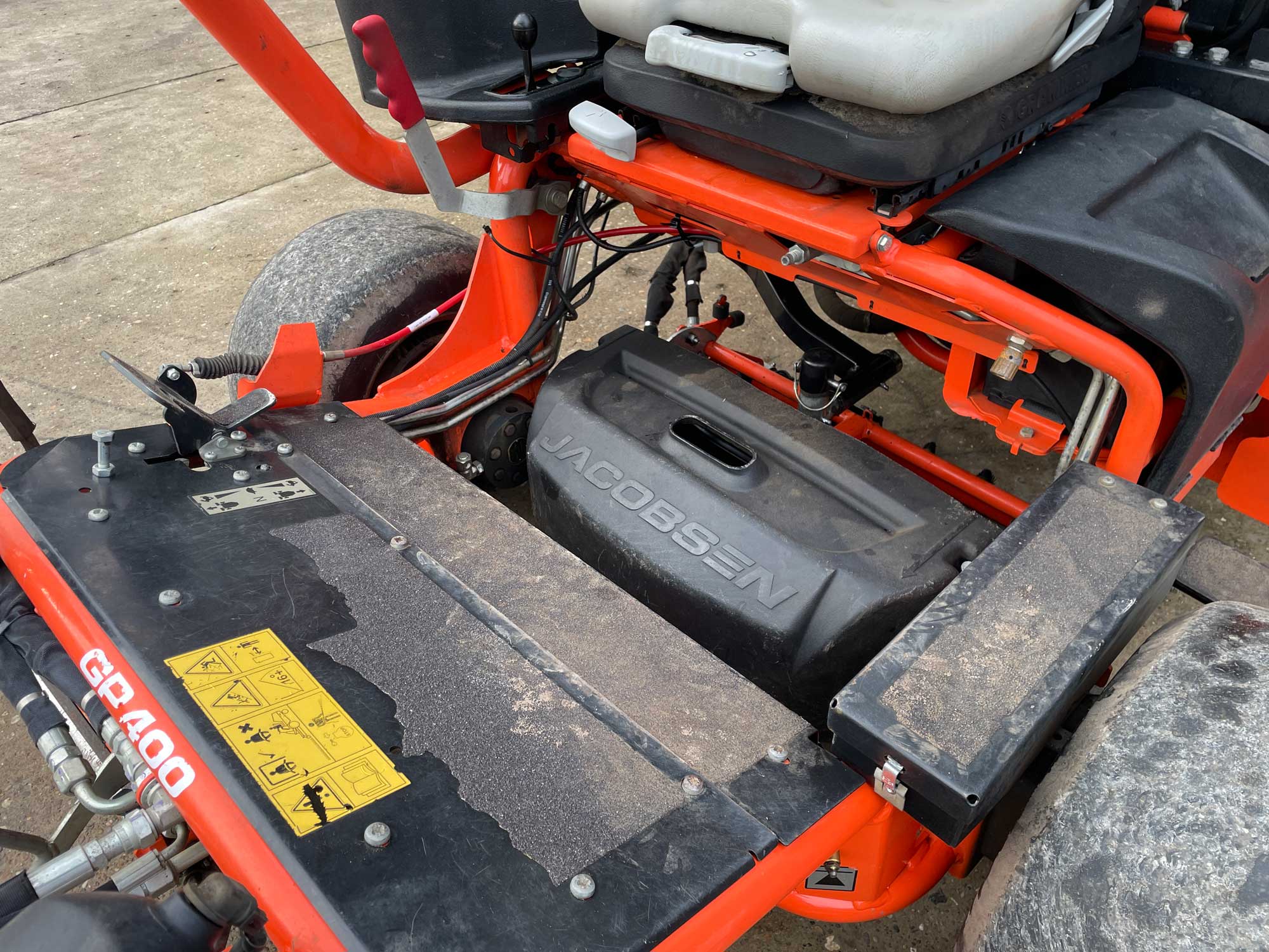 Jacobsen GP400 Ride on Cylinder Mower For Sale. 1322 Hours, Fitted with 7 blade Tee's Cutting Units, Smooth Front roller & RRB Kit. benefits from having 3WD.