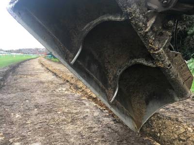 All drainage trenches were excavated with a Shelton Wheel, the main drains to a depth of 550mm and the lateral drains 450mm. Perforated drainage pipe was laid and the trenches backfilled with gravel and sand. Finally, the drainage lines were seeded with Limagrain MM60.