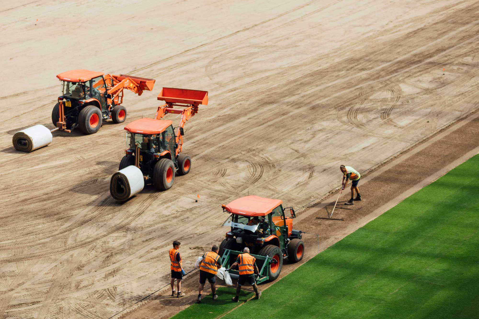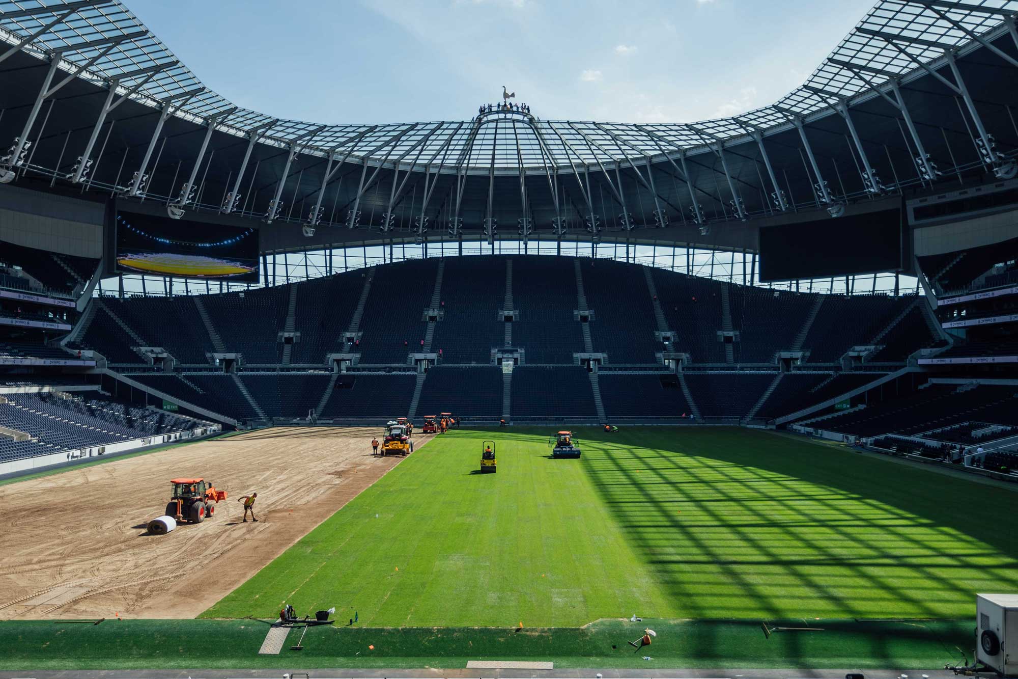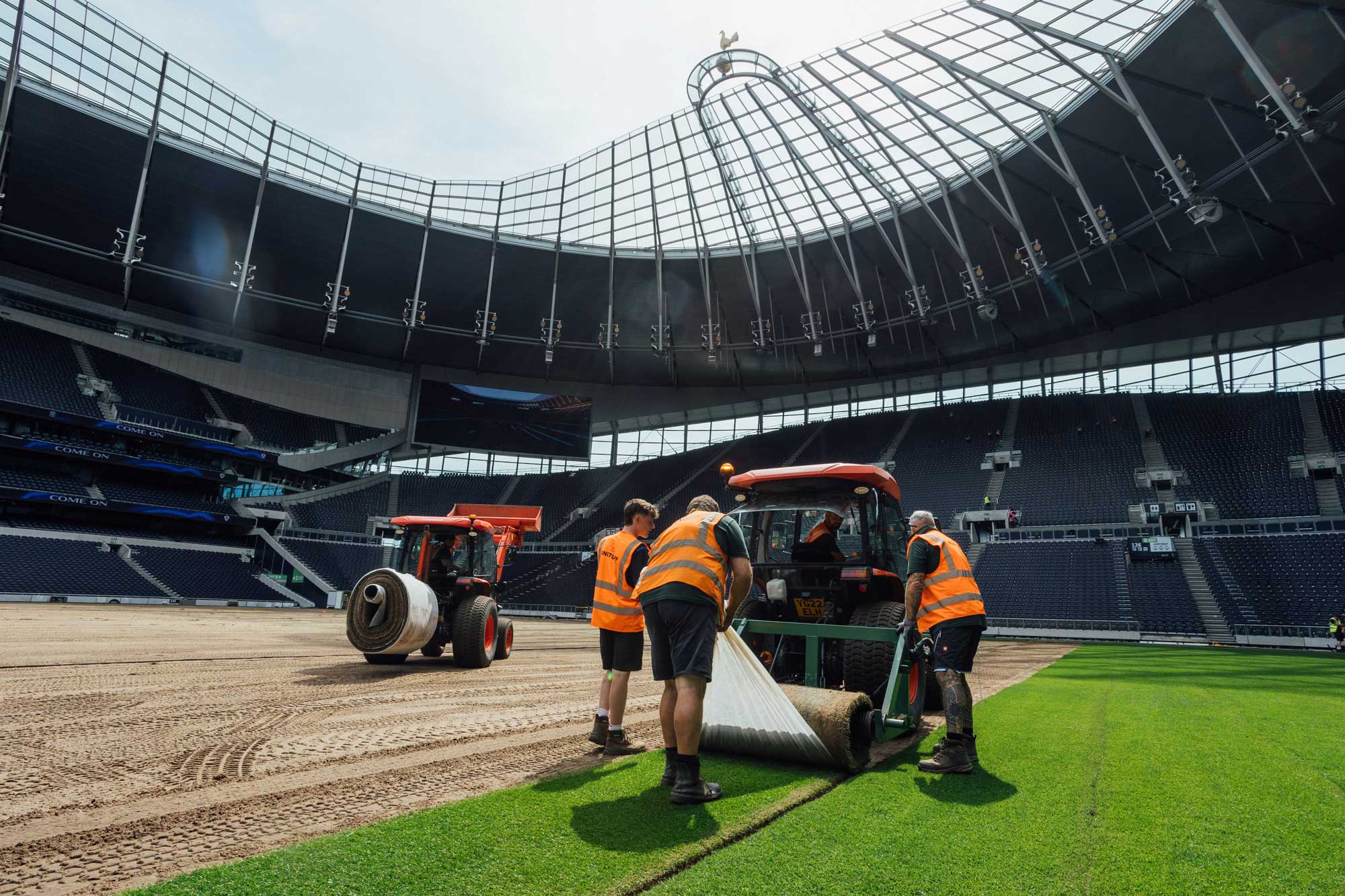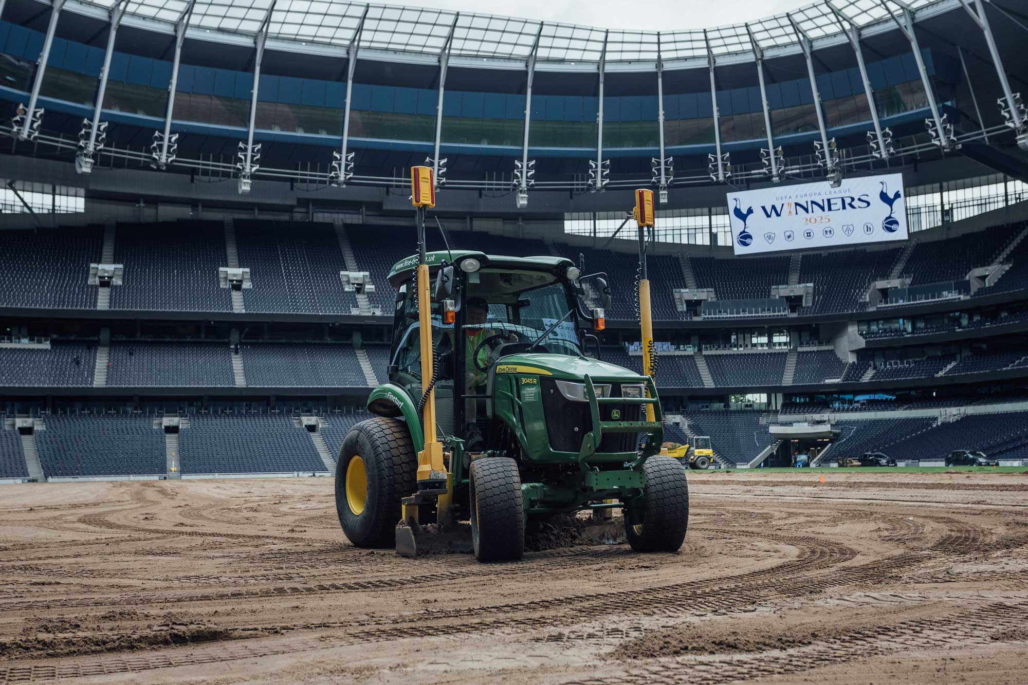 Ahead of installation in early August 2025, the stadium surface underwent a two-day preparation programme, including light cultivation and laser grade levelling. The harvested pitch was then installed and, remarkably, handed back to the Tottenham Hotspur in-house grounds team just four days before the first home fixture of the new season.